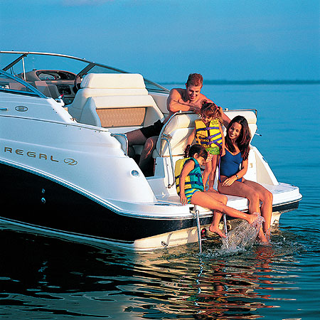 Создавая этот катер, конструкторы Regal Marine Industries остались верны себе. Отличительная черта этой компании заключается в богатейшем стандартном техническом оснащении и широком выборе двигателей и опций. На выбор предлагается 10 (десять!) вариантов двигателей, среди которых есть и Volvo Penta, и MerCruiser; и бензиновые, и дизели. Максимальную скорость 82 км/ч катер развивает 375-сильным Volvo Penta 8,1 Gi. Из дополнительного оборудования стоит отметить возможность (не совсем обычную для катера данного размера) установки генератора и кондиционера/отопителя. Не может не порадовать наличие таких полезных вещей, как прожектор с дистанционным управлением и якорь с электролебедкой. Единственное, на чем хочется еще заострить внимание, так это на том, что 2665 изначально комплектуется креплением для буксировки лыжника (читай: банана, центрифуги, летящего кресла и прочих водных радостей). Вот оно, «соломоново» решение вечного вопроса, что купить: спортлодку (а как же комфорт, душ, холодильник, санузел?) или прогулочный катер (а как же скорость и развлечения?).
