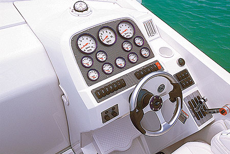 Установленный сзади диван рассчитан на троих и снабжен крупными подголовниками и широкими подлокотниками с нишами для прохладительных напитков. Благодаря Т-образным поручням сидящий по центру пассажир чувствует себя весьма комфортно даже на приличной волне. С помощью этих приспособлений обеспечивается доступ к багажному отсеку, находящемуся под подушкой дивана. Если заказать пару дополнительных кресел, то в кокпите Baja 36 Outlaw сможет разместиться компания из семи человек. В распоряжение пассажира, находящегося слева от капитана, предоставлена стереосистема Clarion, выше которой находится вместительный «бардачок».