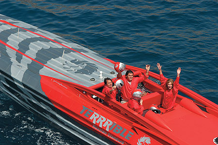 Я постоянно участвую в гонках Primatist Trophy. А мой приятель, олимпийский чемпион-горнолыжник Альберто Томба, установил рекорд скорости при переходе между Порто-Рафаэле на Сардинии и Порто-Бонифаччо на Корсике, проделав этот путь за 12 минут (обычно требуется минут сорок).