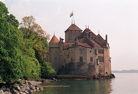 Шильон – самый красивый и самый известный замок Швейцарии. Красивый, потому что с трех сторон окружен водами Женевского озера и в любую погоду смотрится торжественно и живописно. Известный, потому что однажды замок посетил лорд Байрон и написал поэму «Шильонский узник»: «На лоне вод стоит Шильон; Там, в подземелье, семь колонн покрыты влажным мохом лет. На них печальный брезжит свет» – выцарапанный поэтом на одной из колонн автограф сохранился до сих пор. К моменту посещения замка воспетый в поэме узник уже триста лет как умер. Сторонник независимости Женевы Бонивар был четыре года прикован к столбу, но вспоминаем его сейчас совсем не из-за его подвигов в борьбе с герцогом Савойским, а только благодаря Байрону.