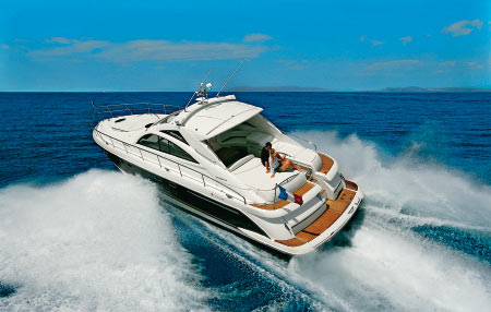 Отделка помещений выполнена на совершенно новом уровне: обновили весь «пакет» материалов — от дерева до текстиля и кожи, приведя интерьер в соответствие с концепцией самых свежих моделей Fairline: Targa 44 GT и 64 GT. Расширили и список предложений по двигателям — полностью он будет обнародован на выставке в Дюссельдорфе. Пока же известно, что с парой движков Volvo Penta D-12-800 по 775 л.с. лодка развивает скорость 36 узлов.