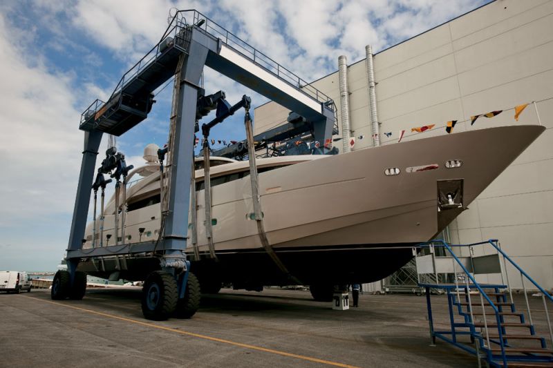 И мысли эти только укрепляются по мере знакомства с техническими характеристиками 120-й серии. Судите сами. При длине 37 метров яхта способна развить головокружительную скорость — 34 узла! В ходе испытаний близ Анконы при спокойном море, умеренном ветре и неполной загрузке на спидометре появлялась даже цифра 36. Очень практично — шутят на верфи: позавтракав на Сардинии, можно успеть к пятичасовому чаю в Монако.