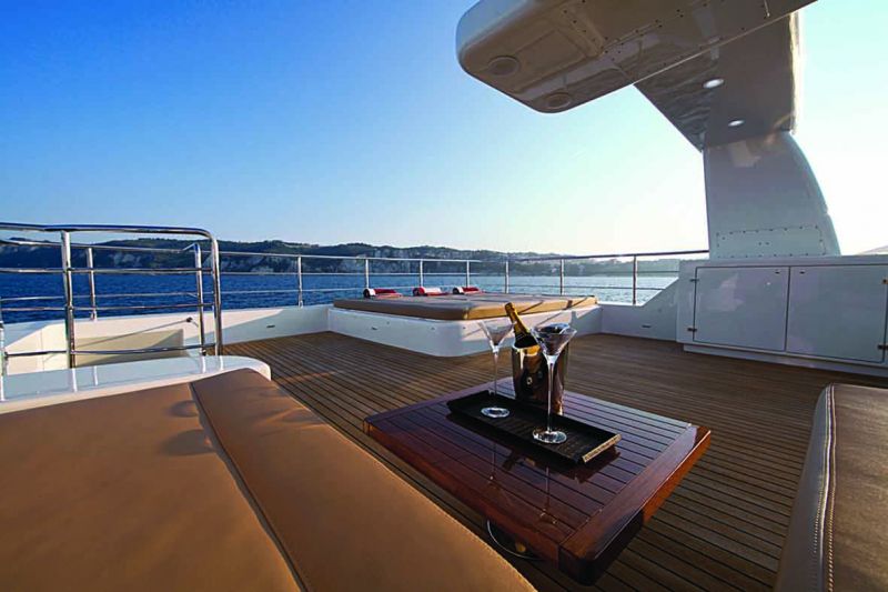 Несомненное преимущество Darwin 86 — наличие шестиметрового тендера, что является, как правило, прерогативой судов большего размера. Тендер расположен на открытой части мостиковой палубы, где помимо него находятся открытая обеденная зона и место для шезлонгов.