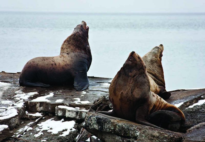 Восток Камчатки. Мы идем по самому краю материка/страны/океана, впечатывая сапоги в прибойку, как в асфальт, и в течение трех дней никого, кроме чаек, нерп и медведей. Когда пригревает холодное солнце, мы сбрасываем одежду и под удивленные взгляды нерп бросаемся в волны.