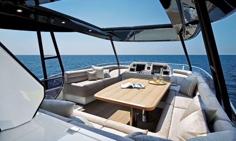 Новый флайбриджный Squadron 60 — настоящий шоу-стоппер. Благодаря элегантному, классическому дизайну с легкой ноткой авангарда на эту яхту будут обращать внимание в любой марине. Создатели называют эту яхту роскошью в миниатюре и «домом вдали от дома». Просторные жилые зоны плавно перетекают одна в другую. Мастер-каюта, расположенная по центру корпуса, спроектирована таким образом, чтобы вместить широкую кровать, размеры которой больше ассоциируются с индустрией суперъяхт. Особая гордость компании — прекрасно оборудованный флайбридж со вторым постом управления, обеденной зоной и лежаками для загорания. Купальная платформа — настоящий пляжный клуб, который оценят все любители яхтинга.
