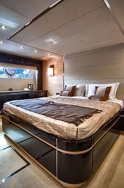 Возможностей для кастомизации у 68 Sport Yacht тоже более чем достаточно. Варьируется количество кают и спальных мест на борту, нет препятствий для переноса камбуза с нижней палубы на основную и, наоборот, дополнения камбуза обеденной зоной внизу. Неизменным остается мастер-каюта на миделе и VIP в носовой части, так же как на Predator 68, изолируемая с помощью потайной двери от остального пространства. Во второй гостевой каюте можно установить пульмановскую кровать вместо классической — на случай если каютой чаще всего пользуется один человек или она предназначена для детей. В отделке интерьера по желанию используется как классический светлый дуб, так и беленый или же альпийский орех и венге. Дизайн от студии Ken Freivokh Design, ткани и отделка от Armani Casa — в нашем арсенале предусмотрено все необходимое для хождения на 68 Sport Yacht в любом регионе, на любой воде.