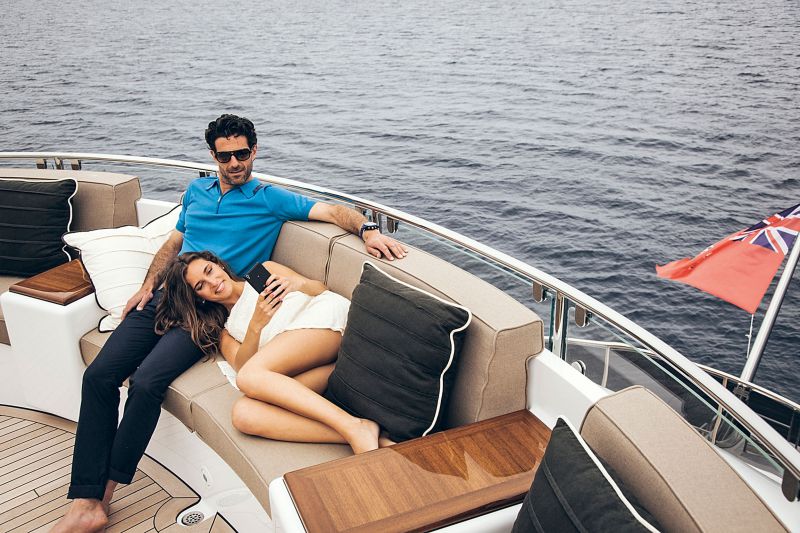 Венчает яхту сандек. В его носовой части находится джакузи, а ближе к корме — кресла, формирующие прекрасную панорамную площадку, откуда открывается ничем не ограниченный вид на окружающую природу. Открытые пространства также имеются и на верхней палубе (неформальная обеденная зона), и в кормовой части главной палубы (традиционный лаундж).