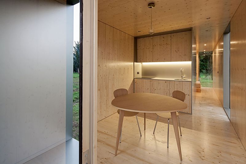 Проект «парящего» дома разработан португальским архитектурным бюро MIMA. Эффект подвешенности в воздухе достигнут при помощи зеркальных панелей, которыми обшит фундамент. Каждая жилая капсула имеет пространство для гостиной, кухню, спальню и санузел. Панорамные окна сохраняют ощущение простора и полета, даже когда вы находитесь внутри. Размеры дома могут варьироваться от 7,2 до 13,2 м в длину по желанию заказчика.