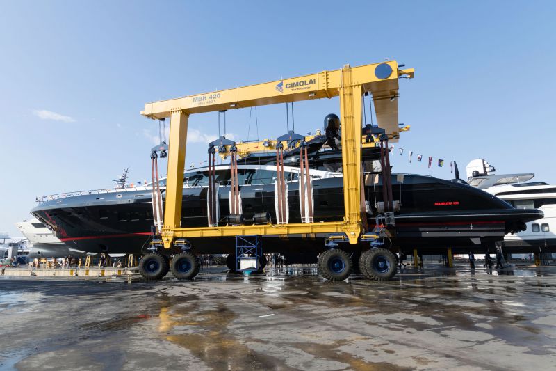 Двенадцатая по счету 50-метровая яхта Maxi Open в семействе Mangusta 165 и третья в новой серии Evolution спущена на воду в Виареджио. Это первая из 50-метровых Mangusta c корпусом черного цвета. Благодаря красной полосе вдоль ватерлинии, бело-черной надстройке, яхта выглядит очень броско. Брутальная раскраска вполне соответствует темпераменту: лодка водоизмещением 300 т оснащена четырьмя водометами KaMeWa и двигателями MTU 2600, позволяющими развивать крейсерскую скорость 35 узлов. Четыре гироскопических стабилизатора Seakeeper улучшают ходовые качества судна при движении в водоизмещающем режиме на скоростях 8-10 узлов, а также обеспечивают исключительный комфорт при стоянке на якоре. Осенью яхту можно будет увидеть на яхтенной выставке в Монако.