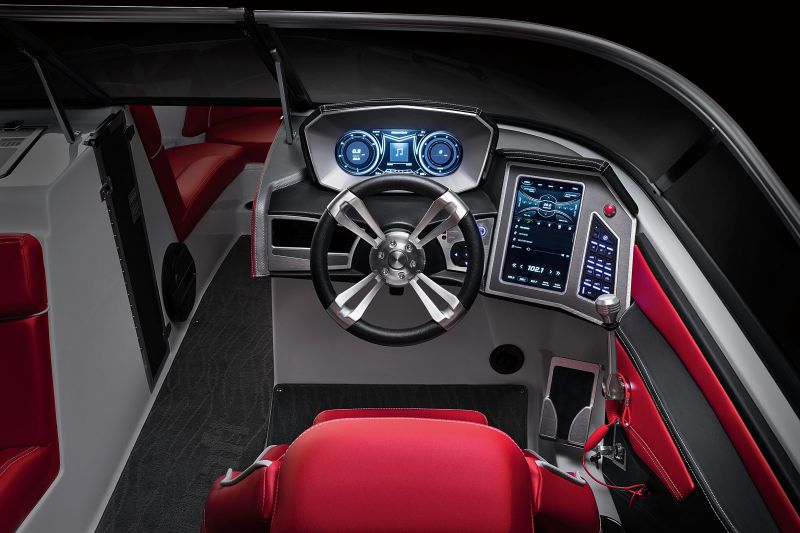 Еще одной громкой новинкой от MasterCraft стала совершенно новая система управления Optional dual screen dash. Она представляет собой два сенсорных монитора диагональю 10 и 12 дюймов, с помощью которых производится управление основными функциями буксировщика: круиз-контролем, балластом, светом, магнитолой, серф-системой Gen2 и др. Новое программное обеспечение от Murphy Software легко синхронизируется со смартфонами на iOS и Android. Новая система управления включает в себя HD камеру заднего вида, изображение с которой выводится прямо на приборную панель.