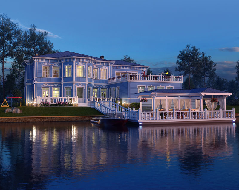 В ноябре резиденция «Суворов» – юбилейный проект команды архитекторов Екатериновки – готова встретить своих владельцев. Роскошный особняк на берегу Волги, выполненный в стиле русское барокко – искусное олицетворение современным зодчеством образа русской усадьбы 18 века. Изысканная деревянная отделка фасада, решенная в сине-белой гамме, прячет под собой прочный и долговечный кирпич, составляющий конструктив дома. Совершенство форм и пропорций, замысловатость деталей этого особняка притягивают взгляды. Особую привилегию при проектировании внутреннего пространства архитекторы отдали хозяйским покоям, традиционно располагаемым на верхних этажах. Супружеская спальня площадью более 50 квадратных метров имеет выход на огромную приватную террасу, с которой открываются удивительные виды на реку.
