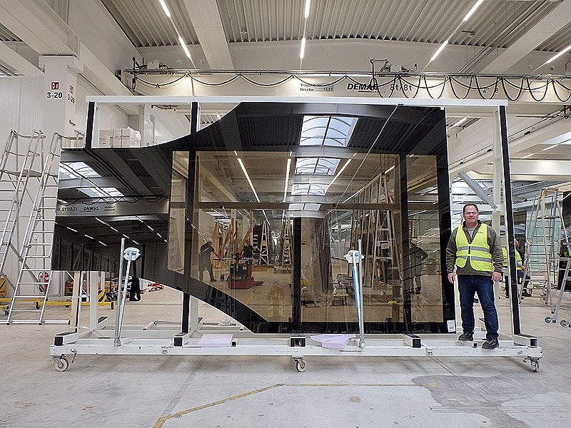 К началу раскройки стальных листов для корпуса в ноябре 2016 года проект находился в разработке более двух лет. Дальнейшие испытания макета в бассейне проводились уже с учетом реальных размеров судна, а главное – колоссальных стеклянных конструкций общей площадью более 750 м² и весом свыше 60 тонн. Самая длинная из стеклянных панелей яхты достигает 10,6 м в длину, а самая толстая – 9,4 см в толщину. Все остекление выполнено из многослойных панелей GLY MarineCobond от компании GL Yachtverglasung. Для их фиксации используется технология вклейки без единого винта или заклепки. Остекление сертифицировано регистром Ллойда и не требует установки заслонок в случае, если яхта попадет в шторм.