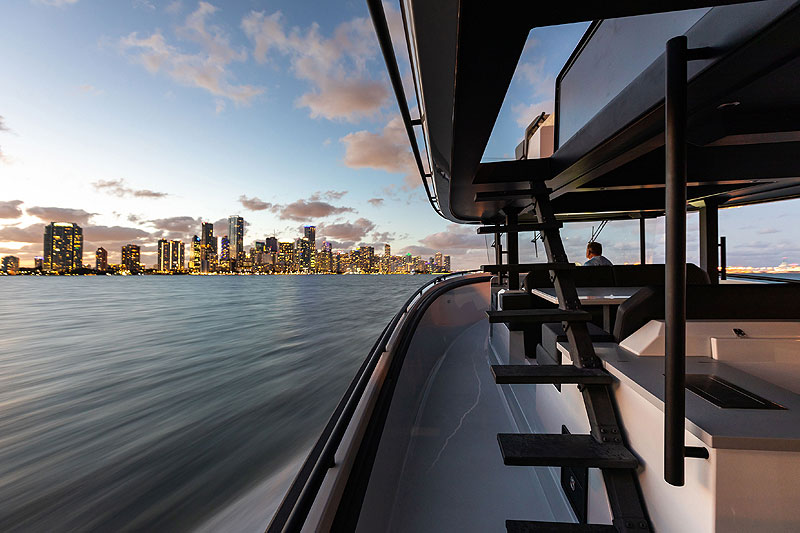 Магическое число 8 объясняется просто. На яхте могут жить восемь человек. К их услугам на нижней палубе будут четыре комфортабельные двухместные каюты с высокими потолками. Камбуз оборудован посудомоечной машиной, морозильной камерой, льдогенератором, двумя холодильниками для еды и напитков и отдельным холодильником для вина.