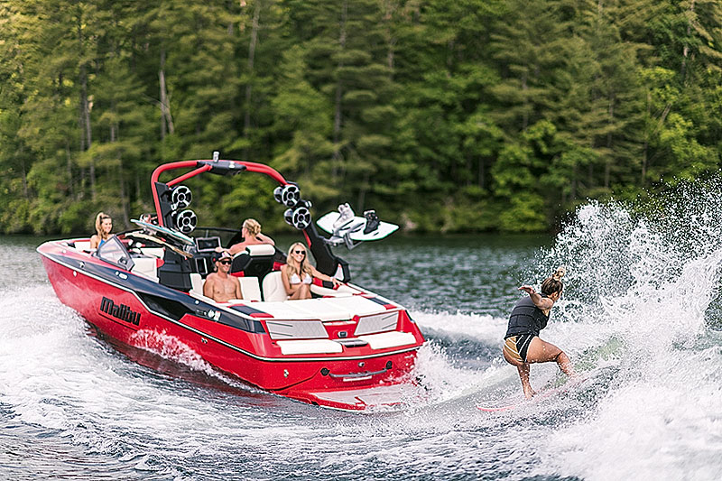 «Спрос на M240 был ошеломляющим, и мы решили создать его компактную версию. Наши инженеры много месяцев разрабатывали лодку длиной чуть менее 23 футов, которая соответствует уровню серии M от Malibu Boats» – рассказывает глава компании Джек Спрингер. Действительно, на выставке в Дюссельдорфе в январе возник настоящий ажиотаж вокруг буксировщика M240. И это была Европа, а что уж говорить про США! Там катер пошел на ура и получил престижную награду национальной ассоциации Water Sports Industry Association (WSIA). Корпус нового боурайдера-буксировщика Malibu M220 – тот же M-Line, хорошо известный по старшей модели, но длиной 6,83 м, то есть примерно на полметра короче. Его высокий надводный борт позволяет разместить на катере много балласта или багажа. Да и ощущаешь себя защищеннее, чем на борту многих других буксировщиков среднего размера. По морским волнам идешь с уверенностью большой лодки, сохраняя при этом все плюсы управления юркого, компактного судна. Балластная система включает в себя систему Plug ‘n’ Play и Quad Hard Tank с высокоскоростными помпами eMLS для быстрого наполнения или слива. Меньше времени будет уходить на подготовку катера к серфингу. Конечно же, катер оснастили фирменными системами настройки волны, такими как Surf Gate (идеальная волна с обеих сторон катера) и Power Wedge III (регулировка высоты и формы волны) и браслетом Surf Band. Райдер надевает его на запястье и сам контролирует cкорость лодки, переключение волн из стороны в сторону и громкость музыки, пока серфит на доске. Не нужно отвлекать пилота!