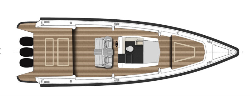Тот самый ранэбаут с карбоновым корпусом и модным резким силуэтом, который привлёк к себе много внимания во время осеннего яхтенного фестиваля в Каннах, оснастили 4-мя моторами Mercury Racing 450R,