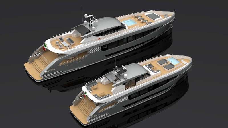 Спадолини добавляет, что его творческий почерк в новых моделях весьма заметен. Он проводит параллели с такими своими проектами, как суперъяхты Rossinavi Aslec 4 (48 м) или CCN Freedom (27 м).
