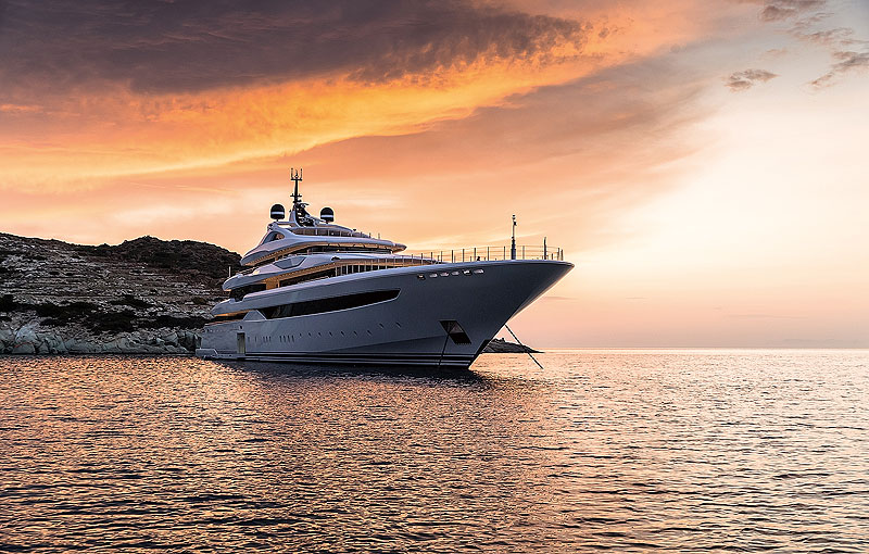 Облик яхты со стальным корпусом и надстройкой из алюминия выдержан в том же узнаваемом стиле Golden Yachts, что и у ее предшественницы, однако дополнительные 10 м длины при ширине 13,8 м позволили сделать гостевое пространство просторнее и гармоничнее, наполнить его воздухом и светом, добавить атрибутов роскоши и комфорта.