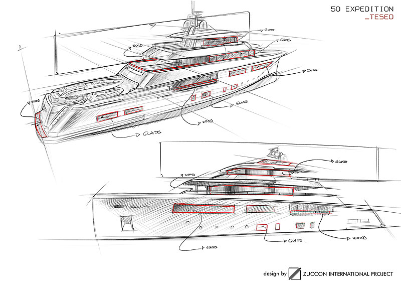 Этап формирования концепции может длиться от нескольких месяцев до года и более, пока в полную гармонию не придут все его элементы: корпус, форма носа и транца, длина, ширина и осадка, планировка каждой палубы, внутренний объем каждого помещения, дизайн пляжного клуба, кинотеатра, велнес-зоны, расположение гаража для тендеров и тренажерного зала.