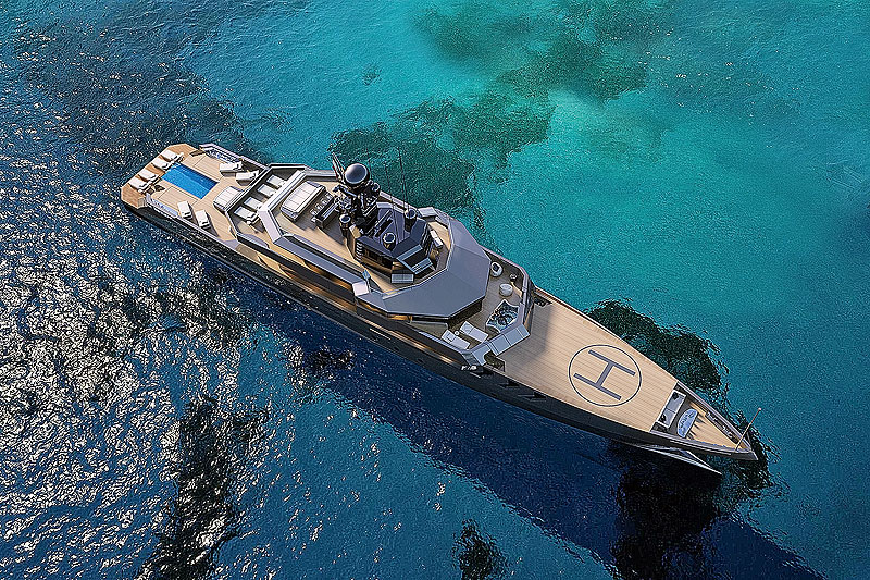Через 10 месяцев после своего дебюта с концептом суперъяхты категории semi-custom UP40 молодая марка Antonini Navi получила заказ на строительство 56-метровой OPV 56 по индивидуальному проекту. Движущей силой его разработки стал гранд яхтенного дизайна Фульвио де Симони. Комментируя строгие линии экстерьера, заимствованные у кораблей береговой охраны, он отметил: «В море простота становится преимуществом и окупает себя: рациональная конструкция в сочетании с удобством и мореходностью – это те качества, которые ценят опытные владельцы яхт». И корпус, и надстройка судна с валовым внутренним объемом 500 гросс-тонн будут выполнены из алюминия. На носу лодки размещена вертолетная площадка, а в кормовой части основной палубы находится большой бассейн с прозрачной стенкой. Вокруг него на площади более 150 кв.м можно расставить шезлонги, диваны и столики и разместить барную стойку. Верхняя палуба полностью отведена под мастер-апартаменты и частную террасу владельца c малым бассейном.