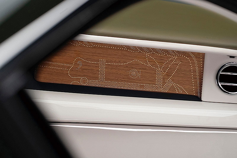 Салон был отделан кожей от Hermès, в особенности ключевые поверхности: рулевое колесо, силовые поручни, рычаг переключения переда, а также верхняя часть передней панели, подлокотники, полка багажника, бардачок и багажный отсек. В передней панели установлена композиция из королевского ореха по мотивам работ французского художника и иллюстратора Пьера Перона, который по заказу Hermès создал множество легендарных узоров для шарфов. Этот же сорт дерева был использован для сеток динамиков, отделки центральной и задней консолей, а также откидных столиков.