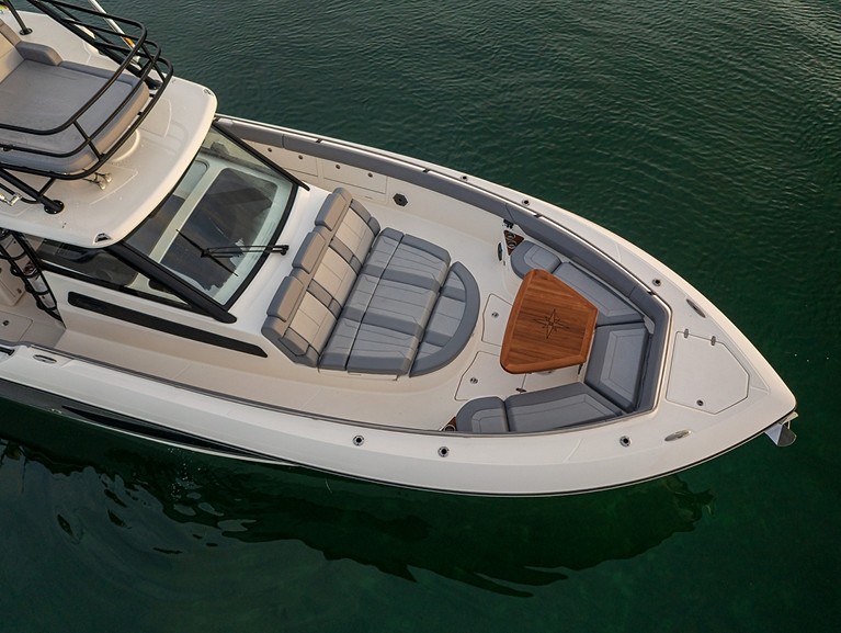 Катер комплектуется управляемой джойстиком системой маневрирования Axius с функцией cпутникового позиционирования Skyhook. Лодка оснащена системой автоматически регулируемых транцевых плит Dynamic Running Surface и гиростабилизатором качки Seakeeper.