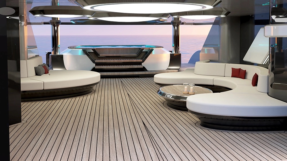 Впечатляющие длина 90 м, ширина 13,8 м и валовой внутренний объем 2868 брутто-тонн позволили разместить на борту все, чтобы 12 гостей чувствовали себя на вершине комфорта. Они будут путешествовать в семи каютах, включая «мастер» с панорамными окнами, кроватью-островом, просторной гостиной, две VIP-каюты и четыре двухместные каюты.