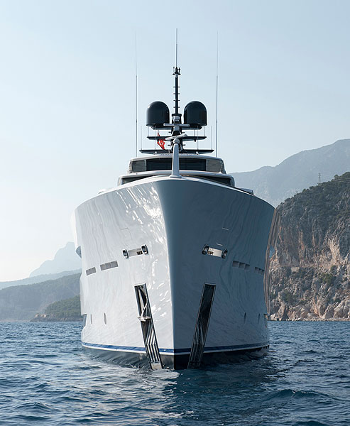 Особенно эффектно смотрятся стеклянные вставки в районе кормового пляжного клуба: высокие фальшборта обеспечивают максимум приватности, но пространство не кажется наглухо закрытым, поскольку иллюминаторы позволяют наблюдать за происходящим справа и слева по курсу.