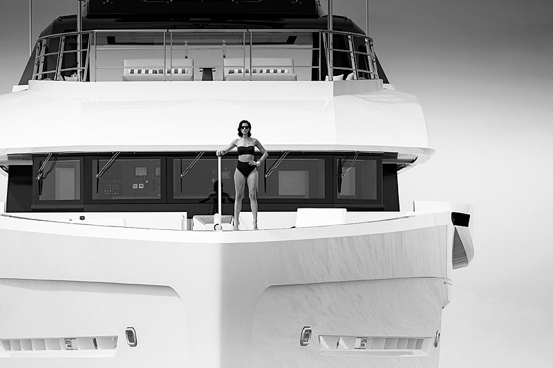 Лодки этой линейки легко узнать по трапециевидным окнам помещений на основной палубе. У первого корпуса Come Together и третьего корпуса, который строится сейчас, они именно такой формы. А вот Рейсман заменил их одним широким оконным проемом. Это нечто большее, чем стремление во что бы то ни стало сделать свою яхту уникальной. В таком решении есть своя логика: оно позволяет впустить еще больше света в помещения основной палубы и сделать силуэт лаконичнее, не отвлекая внимание от высокой черной надстройки.