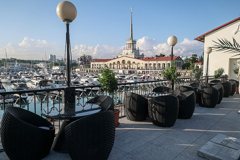 Все столы на террасе развёрнуты в сторону заката, чтобы каждый гость мог сполна насладиться красочным природным шоу. В барной карте — эксклюзивные авторские миксы и тщательно отобранные винные позиции, к которым можно заказать лёгкие морские закуски: тартары, суши, роллы, свежайших устриц и морских ежей. Опытные кальянные мастера предложат паровые коктейли с разнообразной палитрой вкусов.