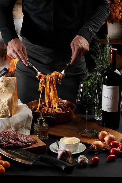 Шефы Андрей Кошкодан и Максим Микшис представляют меню на тему осеннего леса, составленное из традиционных блюд французской, итальянской и австрийской кухни с насыщенными вкусами. Как закуска хороша бриошь с камчатским крабом, соусом грибиш, зеленым яблоком и икрой осетра. Тем, для кого мясо всегда праздник, можно посоветовать австрийские блюда — тартар из мраморной говядины по-венски с хрустящей бриошью или тафельшпиц из телятины с яблочным соусом, а если останутся силы, добавить беф бургиньон из тушенных говяжьих щечек с глазированными корнеплодами и картофельным пюре. На излете осени, посреди реликтового сочинского леса ничто не заменит аромат белых грибов, трюфеля и каштанов, окружающий фрикасе из кролика. Вино и тепло камина усилят впечатление. В качестве ингредиентов можно не сомневаться: в Mamai-Calé принципиально готовят из органических продуктов от небольших, хорошо себя зарекомендовавших местных производителей.