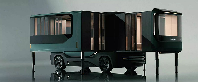 Калифорнийский стартап AC Future представил на выставке CES концепцию электрического автодома, разработанную в сотрудничестве с легендарным итальянским ателье дизайна Pininfarina. В дороге кемпер имеет длину 6,1 м и ширину 2,4 м. На стоянке можно одним нажатием кнопки выдвинуть три секции. Одна боковая секция выезжает на 2,4 м и освобождает место для большой кровати и гостиной. Секция с другой стороны выдвигается на 75 см — в ней располагается кухня. Задняя часть удлиняет корпус на 2,4 м, превращаясь в просторную спальню. Общая площадь жилого пространства составляет 37 кв. м. Интерьеры выполнены Pininfarina в современном стиле. На крышах выдвижных секций установлены солнечные батареи. AC Future утверждает, что в идеальных условиях они смогут вырабатывать не менее 25 киловатт-часов энергии в день. Также на крыше размещен атмосферный генератор воды, способный производить до 50 л в сутки. Информации о силовой установке пока нет, но предполагается, что AC Future предложат электрическую и бензиновую версии, а может, и гибридную.