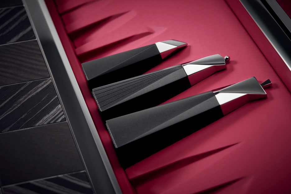 Эмблемы Spirit of Ecstasy украшают переднюю и заднюю стенки набора, а дополнительные королевы хранятся в незаметных ящичках. Элегантный набор доступен для заказа в шоу-румах и частных офисах Rolls-Royce по всему миру.