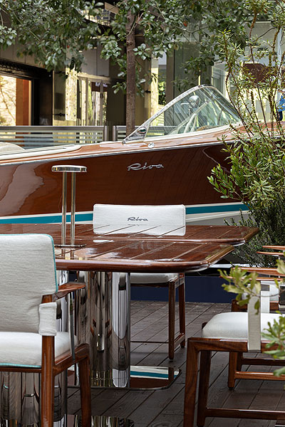 Разработанная Массимо Кастаньей коллекция черпает вдохновение в самой душе Riva, в ее 180-летнем наследии. Каждая деталь — это отголосок той самой Dolce Vita 60-х, технологических инноваций и индивидуального подхода, которые всегда были визитной карточкой верфи. Коллекция Exteta x Riva включает в себя полный ассортимент мебели, подходящей для палубы яхты, для террасы загородного дома или пентхауса в городе. Каждый предмет воплощает в себе стиль Riva, начиная с материалов: благородного дерева сапеле, покрытого глянцевым лаком, а также блестящих и ярких вставок из нержавеющей стали. Диваны кажутся парящими в воздухе из-за незаметных изящных ножек и пышной обивки. Для них можно выбрать два типа подлокотников: мягкие, с плавным изгибом, или деревянные, с широким изогнутым контуром, напоминающим изящные линии яхт Riva. В том же стиле выполнены кресло для отдыха и легкое складное режиссерское кресло. В двух размерах представлен обеденный стол и журнальный столик со столешницами, напоминающими планки палубы. Беспроводная лампа из нержавеющей стали станет изысканным акцентом в любом пространстве.