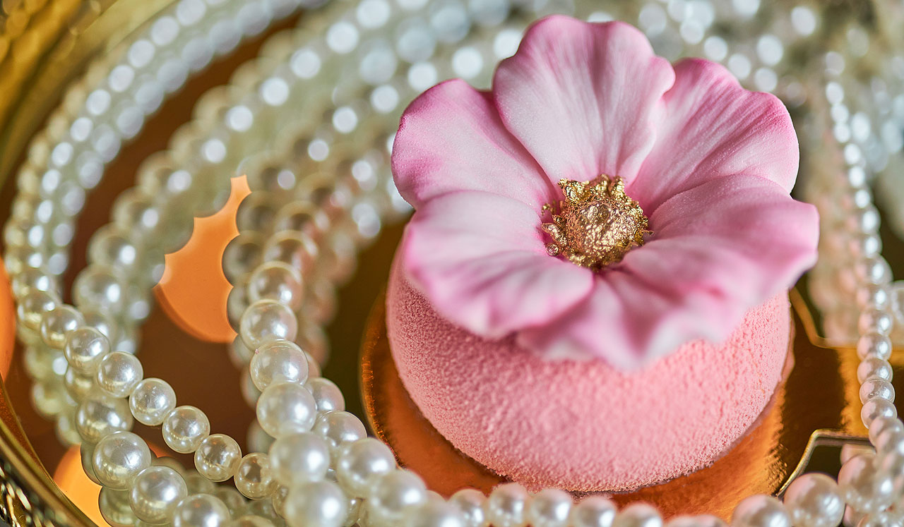 Пирожное «Сердце» – лимонный бисквит с чайной розой, белым шоколадом и вафельной крошкой, внутри которого сливочный мусс и начинка из клюквы, клубники и земляники. Мини-эклер с кремом-пломбиром и малиновым конфи украшен помадкой и бутоном из мастики. Клубничный торт с розами из карамели приготовлен из свежей клубники, ванильного мусса с цветами апельсина, клубничного желе и карамелизированных фисташек. Макарони «Цветочная симфония» выпечен с двойным кремом и пышно декорирован миниатюрными цветами. Фисташково-йогуртовый бисквит дополнен ягодным желе, грушей, клубникой и фисташковым кремом. «Бархатная роза» задумана как японский бисквит с ванильным ганашем, сочной начинкой из ягод и муссом из белого шоколада и творожного сыра.