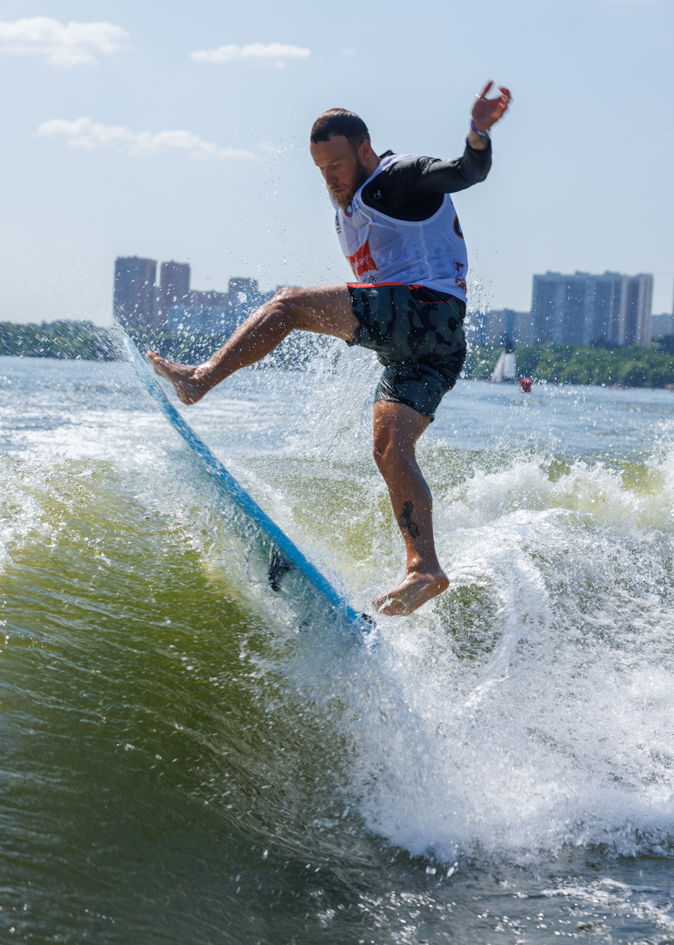 На волнах Строгинского затона выступили 40 райдеров из России, Японии, Южной Кореи и Туниса. В условиях плотной конкуренции спортсмены продемонстрировали высокий уровень технической сложности, стабильность исполнения и зрелищность катания. Впечатляющие трюки, тактическая работа с волной и индивидуальный стиль сделали каждую дисциплину насыщенной и непредсказуемой.