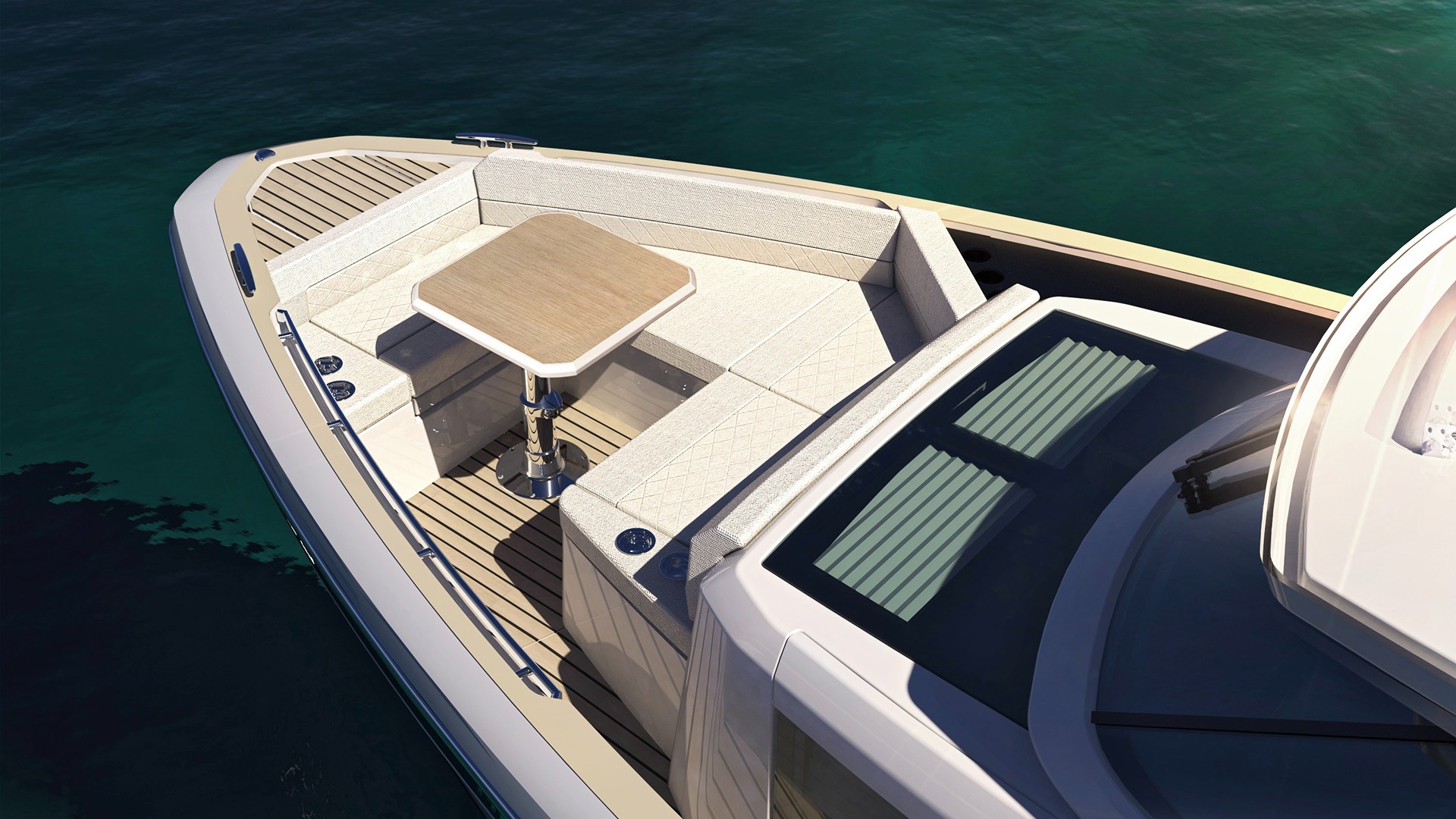 Модель 400 GTS получила крышу T-top, планировку semi walkaround и откидныe борта в кормовой части. Внутри предусмотрены две каюты. Передние сиденья легко трансформируются в шезлонг, а задние диваны окружают обеденный стол, создавая уютную зону для общения и отдыха.