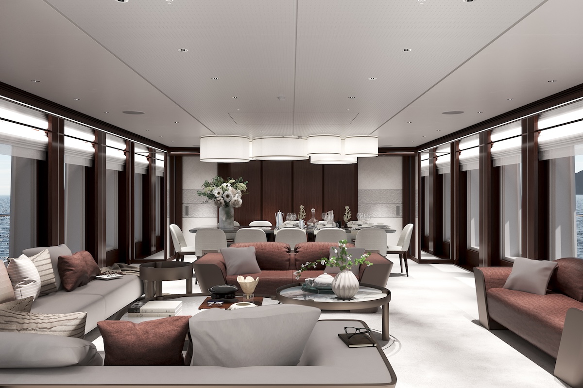 The yacht’s generous 760 GT interior has been masterfully designed by Luca Dini Design and Architecture as a modern ode to the golden age of ocean travel and represents the exceptional in-house work of Heesen Yachts Interiors. The design harmonises expansive, light-filled spaces with the rich, warm tones of natural wengé wood, creating an atmosphere of timeless elegance. The full-beam owner’s apartment is a private sanctuary, complete with a study, a luxurious bathroom featuring Calcite Blue stone, and a private veranda allowing the owners to enjoy privacy outdoors. Four spacious guest suites are located on the lower deck, with a versatile fifth cabin on the bridge deck.