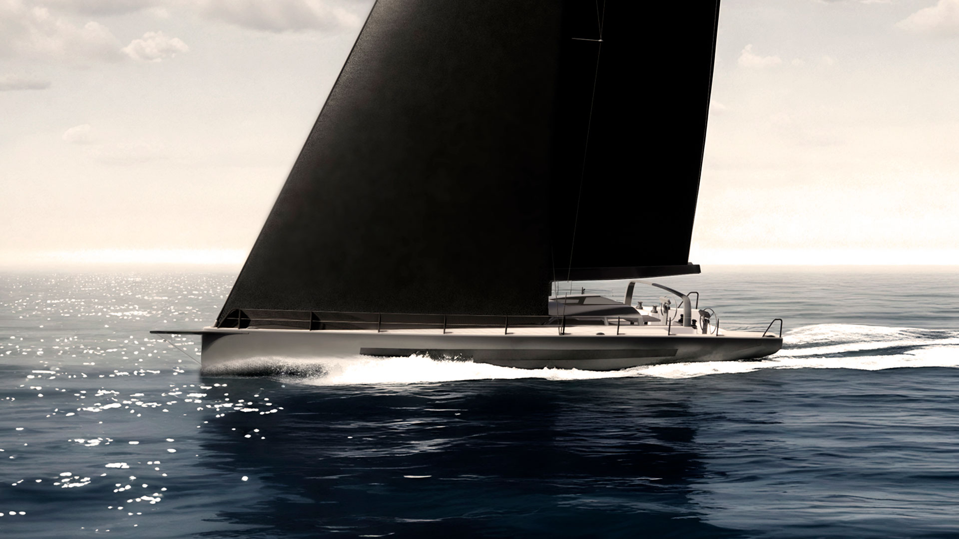 Корпус из углеродно-эпоксидной смолы будет формироваться путем вакуумной инфузии с последующим отверждением, с широким применением сендвичевых композитных элементов даже в конструкции внутренних переборок. Яхта получится очень легкой: расчетный вес порожняком составит 17 тонн, с полной нагрузкой – около 21 тонны.